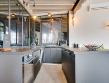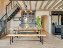 2 odalı daire 80 m2 üstünde 2 kat 'de/da 2. kat. Havadar, 2019 yılında tam/bütün yenilenmiş/bakımı yapılmış, konforlu ve stilli dayalı döşeli: açık oturma /yemek odası ile TV (LCD ekran). 1 oda ile 1 french bed (160 cm, uzunluk 200 cm). Amerikan mutfak (bulaşık makinesi, 4 Endüksiyon ocak tablası, derin dondurucu, kahve makinesi, Kahve makinası için kapsül (Nespresso) ekstra). Duş, ayrı WC, çift lavabo. Klima. Üst kat: çatı tavan galeri ile 2 adet french bed (140 cm, uzunluk 190 cm). Hizmetinize sunulan: çamaşır makinesi, çamaşır kurutucusu, ütü, çocuk yemek sandalyesi, çocuk yatağı, fön makinesi, bebek bezi değiştirme tezgahı. Internet (Wireless LAN, ücretsiz). Park yeri (kapalı, 1), 60 m. Dikkat: ailelere uygun. Sigara içilmez daireler. Duman dedektörü. 6412200059802 Geceleri çok sıcak kalsa bile, güzel, klimayı açabilir ve hoş ılıman bir iç mekan ikliminde uyuyabilirsiniz. Evin ayrıca bir karyolası ile donatılmıştır. Bir park yeri var. Kapalı otopark mevcuttur. Bir çamaşır kurutma makinesi mevcuttur.- tesisler