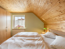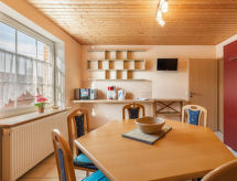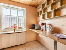 3 odalı daire 85 m2, üst katta. Modern ve rahat dayalı döşeli: oturma odası 18 m2 ile 1 divan ve kablolu TV (LCD ekran), müzik seti ve DVD. 1 oda 14 m2 ile 1 ikili yatak (180 cm, uzunluk 200 cm). 1 oda 19 m2 ile 1 ikili yatak (180 cm, uzunluk 200 cm). Büyük mutfak (fırın, bulaşık makinesi, 4 cam seramik taban, kahve makinesi) ile yemek masası ve kablolu TV (LCD ekran), Radio. Duş/WC. Teras, küçük bahçe. Teras mobilyası, bahçede mangal, şezlong 2 adet). Hizmetinize sunulan: çamaşır makinesi, kasa, ütü, çocuk yemek sandalyesi (ekstra), fön makinesi. Internet (Wireless LAN, ücretsiz). Dikkat: sigara içilmez daireler. Izgara için uygundur. Bir park yeri var. Bir DVD oynatıcı mevcuttur.- tesisler