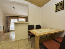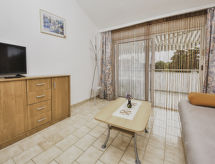 2 odalı daire 42 m2 'de/da 1. kat, güney batı cephesi. Oturma /yemek odası 15 m2 ile 1 çift kişilik divan yatak (140 cm, uzunluk 200 cm), Uydu-TV. Terasa çıkışlı. Giriş ile klima. 1 oda ile 1 ikili yatak (2 90 cm, uzunluk 200 cm). Amerikan mutfak (2 ocak, bulaşık makinesi, derin dondurucu, kahve makinesi). Duş/WC. Klima (ekstra). Teras 8 m2, kapalı. Teras mobilyası. Hizmetinize sunulan: Internet (Wireless LAN, ücretsiz). 1 pet/ dog allowed. Klima sistemi iyi bir oda sıcaklığı sağlar. Çünkü iyi hissetme faktörü önemli bir rol oynar ve bizim için önemlidir.- tesisler