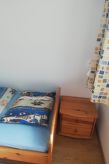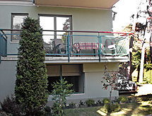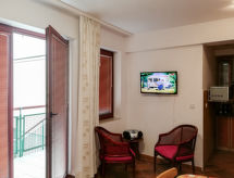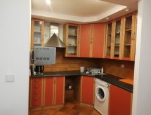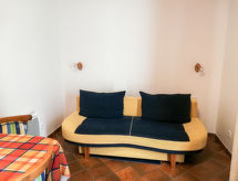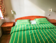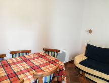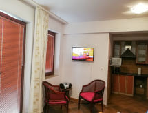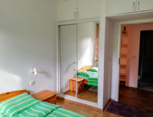 3 odalı daire 55 m2, yüksek zeminde. Aydınlık: giriş 6 m2. Oturma /yemek odası 19 m2 ile 1 çift kişilik divan yatak ve TV (LCD ekran), Radio ve CD. Terasa çıkışlı, güney yönü. 1 oda ile 2 adet yatak (90 cm, uzunluk 200 cm). 1 oda ile 1 french bed (160 cm, uzunluk 200 cm). Amerikan mutfak 4 m2 (4 cam seramik taban, mikro dalga fırın, kahve makinesi). Duş/taharetlik/WC. Doğalgazlı ısıtma. Teras mobilyası. Hizmetinize sunulan: çamaşır makinesi, çamaşır kurutucusu, ütü, cibinlik. Internet (Wireless LAN). Garaj. Kapalı otoparkı var. Bir çamaşır kurutma makinesi vardır.- tesisler