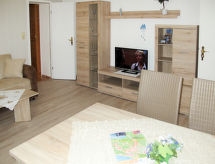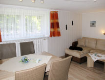 Aile ev "Kristin". 600 m ın merkezinde Zinnowitz, 10 km in merkezinde Wolgast, 35 km in merkezinde Greifswald, yerleşim alanında, 750 m denizden, çıkmaz sokakta. Kullanım için: bakımlı bahçe 700 m2 (çitle çevrili değil) ile çim ve bitki. Tek kişilik kullanım için: küçük bahçe. Teras, bahçe mobilyası, mangal. Basamaklı yol (2 basamaklar) eve kadar. Otopark arsada. Süper market 400 m, Restaurant 500 m, kumsal 750 m, termal havuz "Bernstein-Therme" 2 km. Lütfen dikkat: mekan sahibi aynı yerde ikamet eder. Usedom, özel yelken tecrübesi arayanlar için mükemmel bir yer. Sadece tekrar olumlu bir dalga üzerinde sörf? Yer dalga gezintisine davet ediyor.Interior