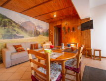 "La Collina", 2 odalı daire 55 m2 'de/da 4. kat. Çocuk için uygundur obje 4 Yetişkin. 2018 yılında kısmen yenilenmiş/bakımı yapılmış, amaca uygun ve bol odunlu dayalı döşeli: büyük oturma /yemek odası ile TV-bağlantısı. Balkona çıkışlı. Amerikan mutfak girişte (4 ocak, fırın, derin dondurucu) ile 1 divan (160 cm, uzunluk 180 cm). Duş/taharetlik/WC. Gazlı ısıtma. Küçük balkon. Bahçede mangal (mobil). Panoramik cepheli, Dağ ve Vadi manzaralı. Garaj evin orada. Dikkat: ailelere uygun bahçeye bakan daireler. Sigara içilmeyen ev. Maximum 1 small pet/ dog allowed. Barbekü için uygundur.- tesisler