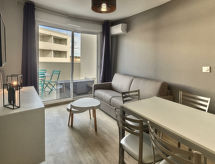 "Résidence La Dune M4P7", 4 odalı dupleksin yarısı 57 m2. Amaca uygun ve güzel dayalı döşeli: oturma /yemek odası ile TV (LCD ekran). 2 adet oda, her oda ile 1 french bed (1 140 cm, uzunluk 190 cm). 1 oda ile 2 adet yatak. Yemek pişirme yeri (2 ocak, bulaşık makinesi, mikro dalga fırın, kahve makinesi). 2 adet duş/WC. Kalorifer. Bir park yeri mevcuttur. Isıtmalı bir havuzu vardır. Özel çamaşır makinesinden daha bağımsızsınız.- tesisler