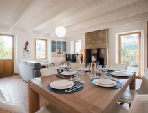 3 odalı sıra evler 76 m2. Güzel ve modern dayalı döşeli: oturma /yemek odası ile 1 çift kişilik divan yatak (140 cm, uzunluk 190 cm), TV (LCD ekran). Terasa çıkışlı. Amerikan mutfak (fırın, bulaşık makinesi, 3 Endüksiyon ocak tablası, mikro dalga fırın). Banyo, ayrı WC. Üst kat: 1 oda ile 1 french bed (1 160 cm, uzunluk 200 cm). 1 oda ile 2 adet yatak (80 cm, uzunluk 200 cm). Ayrı WC. Teras 20 m2. Teras mobilyası. Doğa manzaralı. Hizmetinize sunulan: çamaşır makinesi. Internet (Wireless LAN, ücretsiz). Dikkat: duman dedektörü. Bir küvet mevcuttur. Bir bulaşık makinesi var.- tesisler