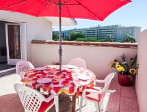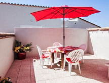 3 odalı daire 50 m2 'de/da 3. kat. Konforlu dayalı döşeli: oturma /yemek odası ile TV, DVD ve klima. Terasa çıkışlı. 1 oda ile 1 french bed (140 cm, uzunluk 190 cm), klima. 1 oda ile 2 adet yatak (90 cm, uzunluk 190 cm). Amerikan mutfak (4 ocak, fırın, bulaşık makinesi, mikro dalga fırın, derin dondurucu, mangal). Duş, ayrı WC. Teras 12 m2 doğu bölgesi teras 12 m2 güney bölgesi. Teras mobilyası. Hizmetinize sunulan: çamaşır makinesi. Internet (Wireless LAN, ücretsiz). Park yeri No. 25 extérieur. Dikkat: duman dedektörü, asansör yok. İkamet. Bir teras var. Çocuk havuzu mevcuttur. İnternet bağlantısı var.- Konaklama özelliklerinin özellikleri
