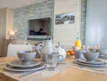 Val Claret: Residence "Le Curling B". In merkezinde Tignes le Val Claret, 200 m kayak bölgesinden. Tesiste: asansör, ski odası, merkezi ısıtma. Marketler, süper market 20 m, Restaurant 10 m, Bar 5 m, fırın 10 m, dalgalı yüzme havuzu 2 km. Spor merkezi 800 m, ski spor tesisi, ski okulu 200 m. Yöredeki tanınmış kayak merkezleri kolay erişilebilir: Espace Killy. Lütfen dikkat: ücretsiz ski otobüsü. Iyi kar durumu halinde kayakla eve kadar gelinebilir. Gece klübü/disko in yakında 150 m evin. Bu evde başka daireler kiralanabilir. Dayanıklılık için kayak yürüyüşünü tavsiye ederiz. Kır kayağı için uygun yollar mevcuttur. Snowboard yapanların yamaçlarında kendilerini kanıtlamaları için çok sayıda kilometrelik pist mevcuttur. Kızak yolunda, şimdi oturmanın zamanı geldi. Heyecan verici bir iniş sizi bekliyor.Interior