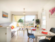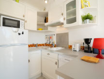 2 odalı daire 31 m2 'de/da 2. kat. Konforlu ve modern dayalı döşeli: oturma /yemek odası ile 1 çift kişilik divan yatak (140 cm, uzunluk 190 cm), TV (LCD ekran). Terasa çıkışlı. 1 oda ile 1 french bed (140 cm, uzunluk 190 cm), klima. Terasa çıkışlı. Amerikan mutfak (2 ocak, bulaşık makinesi, mikro dalga fırın, derin dondurucu, kahve makinesi). Duş/WC. Teras 14 m2 güney doğu cephesi. Teras mobilyası. Havuz ve Liman manzaralı. Hizmetinize sunulan: Internet (Wireless LAN, ekstra). Dikkat: park yeri yok. 1 pet/ dog allowed. Duman dedektörü. İkamet. Geceleri çok sıcak kalsa bile, güzel, klimayı açabilir ve hoş ılıman bir iç mekan ikliminde uyuyabilirsiniz. Ev ayrıca bir teras ile donatılmıştır. Kablosuz bir LAN (kablosuz yerel alan ağı) mevcuttur.- Konaklama özelliklerinin özellikleri