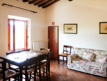 Üstünde 2 katlı. Residence'te 7 daire. Residence'te 9 daire. 5 km ın merkezinde Peccioli, 15 km in merkezinde Lajatico, sakin/sessiz yer tepede, 50 km denizden. Kullanım için: arsa 5 ha ile ağaçlar, çayır/çimen, yüzme havuz (16 8 m, 140 cm derin, Sezonluk kullanılabilirlik: 24.Apr. - 02.Oct.). Havuz alanında duş/tuvalet, dış duş, tenis (ekstra), bahçe mobilyası, çocuk parkı. Evde: masa tenisi, langırt, çamaşır makinesi (birlikte kullanım için, ekstra). 900 m uzun/boyunca giriş (doğa yolu). Otopark (kapalı) arsada. Marketler 2.5 km, süper market 5 km, doğal göl 10 km. Binicilik 5 km, yoldan yüyüyüş yolları mevcut 2 km. Gezilecek yerler: Volterra 30 km, Pisa 50 km. Gezi yürüyüşleri bölgesi Mountain Bike Le Serre 8 km, Bosco di Ortaglia 8 km. Köy ürünlerinin satışı yapılmaktadır.Interior