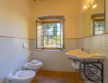 Güzel kırsal konak "Agriturismo Campolungo", üstünde 2 katlı, yapım yılı 1700, 2005 yılında yenilenmiş, çevrili kırlık alan ve bağlar. Yazlık ev'de 6 daire. 1 km ın merkezinde San Donato in Poggio, 41 km in merkezinde Firenze, 50 km in merkezinde Siena, yalnız, güneşli yer, 90 km denizden, yeşillikler içinde. Kullanım için: arsa 6 m2 (çitle çevrili), bakımlı bahçe çiçekler ve ağaçlar, yüzme havuz çitle çevrili (15 8 m, 100 - 300 cm derin, Sezonluk kullanılabilirlik: 01.Apr. - 31.Oct.). Dış duş, teras, bahçe mobilyası, mangal. Evde: çamaşır makinesi (ekstra) (birlikte kullanım için). 500 m uzun/boyunca giriş e kadar yolu (doğa yolu). Otopark (kapalı) arsada. Marketler 1 km, marketler 1 km, süper market 1 km, Restaurant 1 km, Bar 1 km, fırın 1 km, otobüs durağı "San Donato" 1 km, tren istasyonu "Poggibonsi" 13 km, kumsal "Cecina" 90 km. Golf sahası (18 delik) 35 km, tenis 4 km, yoldan yüyüyüş yolları mevcut 100 m, 4 km. Gezilecek yerler: San Gimignano 28 km, Greve in Chianti 20 km, Certaldo 29 km, Volterra 50 km. Lütfen dikkat: ailelere uygun, bebekli ailelere gerekli donanım (dahil). Köy ürünlerinin satışı yapılmaktadır. Mekan sahibi aynı yerde ikamet eder. Tüm evler/daireler endividüel döşenmiştir. Golfçüler dikkat! Burada turunuzu rahat ve sosyal bir ortamda döndürebilirsiniz.Interior