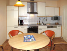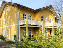 Apartman "Am Wald", üstünde 3 katlı. Residence'te 7 daire. 300 m ın merkezinde Zinnowitz, 10 km in merkezinde Wolgast, 38 km in merkezinde Greifswald, vllalar semtinde, 600 m denizden. Kullanım için: arsa 1'200 m2, bakımlı bahçe ile bitki ve ağaçlar. Evde: çamaşır makinesi (birlikte kullanım için, ekstra). Basamaklı yol (6 basamaklar) eve kadar. Süper market, Restaurant 300 m, kumsal 600 m, termal havuz "Bernstein-Therme" 1.5 km.Interior