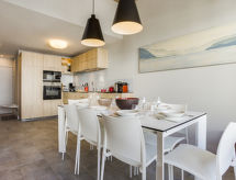 5 odalı daire 90 m2 üstünde 2 kat 'de/da 4. kat. Tam/bütün yenilenmiş/bakımı yapılmış, lüks dayalı döşeli: oturma odası, sürgülü kapı ile TV. Terasa çıkışlı, güney batı yönü. Yemek odası. Giriş. Amerikan mutfak (fırın, bulaşık makinesi, 3 Endüksiyon ocak tablası, mikro dalga fırın, kahve makinesi, Kahve makinası için kapsül (nespresso) ekstra). Banyo, ayrı WC. Üst kat: 1 oda ile 1 french bed (160 cm, uzunluk 190 cm), lavabo ve duş. 1 oda ile 2 adet yatak (80 cm, uzunluk 200 cm). 1 oda ile 1 x 2 ranza (80 cm, uzunluk 190 cm), 1 çek yat (2 kişi. 2 x 80 cm, uzunluk 200 cm). Banyo, ayrı WC, çift lavabo. Büyük teras güney bölgesi. Teras mobilyası, şezlong 2 adet). Hizmetinize sunulan: çamaşır makinesi, çamaşır kurutucusu, ütü. Internet (Wireless LAN, ücretsiz). Dikkat: duman dedektörü. İkamet. Asansörü dairenin zeminine götürebilirsin. Bir bebek karyolası var. Mikrodalga olmadan modern bir mutfak ne olurdu? mevcut olanıdır.- Konaklama özelliklerinin özellikleri