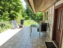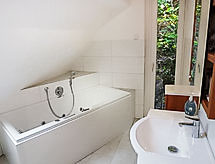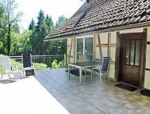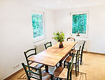5 odalı ev 140 m2 üstünde 2 kat, zemin katta. Oturma /yemek odası ile müzik seti ve çini soba. Terasa çıkışlı. 1 oda ile 1 çift kişilik divan yatak (160 cm, uzunluk 200 cm). 1 oda ile 1 french bed (140 cm, uzunluk 200 cm). Amerikan mutfak (fırın, bulaşık makinesi, 4 cam seramik taban, mikro dalga fırın, kahve makinesi). Duş/WC, ayrı WC. Üst kat: (dik merdiven) oturma odası ile Uydu-TV (LCD ekran), müzik seti. 1 çift kişilik oda ile duş/WC ve jakuzili. Teras mobilyası, bahçede mangal (mobil). Hizmetinize sunulan: çamaşır makinesi, çocuk yemek sandalyesi. Internet (Wireless LAN, ücretsiz). Dikkat: sigara içilmeyen ev. Maximum 2 pets/ dogs allowed. Köpeği bile burada hoş bir konuktur, sonuçta aileye aittir. Rahatınız için tatil sezonunda spa küvetinin tadını çıkarın. Evde ayrıca bir şömine ile donatılmıştır. Bir park yeri var.- tesisler