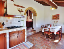 Çok güzel kırsal konak "Linearis", bağımsız, çevrili ağaçlar, kırlık alan ve bağlar. Residence'te 9 daire. Mevkii Linari, 3 km ın merkezinde Poggibonsi, 6 km in merkezinde Barberino Val d'Elsa, 15 km in merkezinde San Gimignano, yalnız, güneşli, yüksek yer, 82 km denizden, yeşillikler içinde. Kullanım için: güzel, bakımlı bahçe 10'000 m2 (çitle çevrili) ile bitki ve ağaçlar, çayır/çimen, yüzme havuz çitle çevrili (14 7 m, 165 cm derin, Sezonluk kullanılabilirlik: 01.Apr. - 05.Nov.). Dış duş, havuzlu ev ile duş ve tuvalet, teras, bahçe mobilyası, mangal, çocuk parkı. Tesiste: karşılama/resepsiyon, lobi, çamaşır makinesi (ekstra), çamaşır kurutma makinesi (birlikte kullanım için, ekstra). Temizlikçi olası (ekstra). 100 m yaya yolu eve kadar. Otopark arsada, ortak garaj (ekstra). Marketler 2 km, süper market 3 km, Restaurant 2 km, fırın 2 km, otobüs durağı 3 km, tren istasyonu "Poggibonsi" 3 km, kumsal "Cecina Mare" 72 km, dalgalı yüzme havuzu 3 km. Gezilecek yerler: Siena 36 km, Firenze 46 km, Volterra 38 km, Pisa 90 km. Lütfen dikkat: resepsiyonun açılış saati 09:00-13:00 saat. Ailelere uygun, bebekli ailelere gerekli donanım (dahil). Köy ürünlerinin satışı yapılmaktadır. Lütfen dikkat: evin önünde yükleme ve boşaltma yapılabilir. Residans elektrikli kapı ile kapalıdır. Mekan sahibi aynı yerde ikamet eder. Tüm evler/daireler endividüel döşenmiştir.Interior