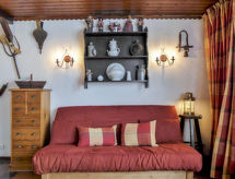 1 oda stüdyo 32 m2 'de/da 1. kat. Oturma /yemek odası ile 1 yatak (90 cm, uzunluk 190 cm), 1 çift kişilik divan yatak (140 cm, uzunluk 190 cm), TV ve DVD. Balkona çıkışlı. Yemek pişirme yeri (bulaşık makinesi, 3 cam seramik taban, mikro dalga fırın, kahve makinesi). Banyo/WC. Doğalgazlı ısıtma. Küçük balkon güney bölgesi ve güney doğu cephesi. Güzel, Dağ manzaralı. Hizmetinize sunulan: Internet (Wireless LAN, ekstra). Dikkat: sadece TV FR. Duman dedektörü. İkamet. Bir küvet mevcuttur. Evin ayrıca bir balkonu vardır. Evde ayrıca bir DVD oynatıcı vardır.- Konaklama özelliklerinin özellikleri