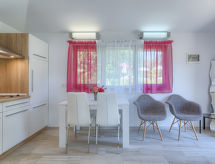 1 oda ev 30 m2. Oturma/yatak odası ile 1 french bed (160 cm, uzunluk 200 cm), Uydu-TV (LCD ekran), klima. Amerikan mutfak (2 ocak, kahve makinesi) ile yemek masası. Duş/WC. Klima (ekstra). Teras 15 m2. Teras mobilyası. Bahçe manzaralı. Hizmetinize sunulan: Internet (Wireless LAN, ücretsiz). Bir yerde duş var. Sadece çabucak şampuanlanmış ve duş almış ve yeni bir tatil gününe çoktan başlamış olabilir. İnternet bağlantısı var.- tesisler