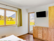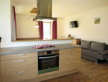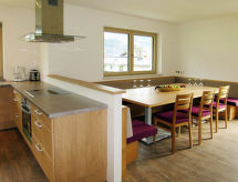 "Luxner (KAB105)", 5 odalı daire 120 m2 'de/da 1. kat. Konforlu ve bol odunlu dayalı döşeli: oturma /yemek odası ile yemek köşesi, Uydu-TV ve Radio. Terasa çıkışlı. 1 çift kişilik oda. Balkona çıkışlı. 2 adet oda, her oda ile 1 divan ve 1 ikili yatak. Balkona çıkışlı. 1 çift kişilik oda ile duş/WC. Balkona çıkışlı. Amerikan mutfak (fırın, bulaşık makinesi, 4 cam seramik taban, mikro dalga fırın, derin dondurucu, kahve makinesi). Duş, duş/WC, ayrı WC. Yerden ısıtmalı. Balkon 45 m2, teras 12 m2, kapalı. Teras mobilyası, balkon mobilyası. Dağ manzaralı. Hizmetinize sunulan: Internet (Wireless LAN, ücretsiz). Dikkat: bir çift kişilik oda dairenin dışında. Sigara içilmez daireler. Hızlı bir şekilde kendiniz bir şeyler hazırlamak için bir mikrodalga fırın hazır.- tesisler