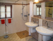 10 odalı ev 270 m2 üstünde 2 kat. Rahat ve bol odunlu dayalı döşeli: oturma odası ile Uydu-TV. Büyük yemek odası ile odun sobası. Küçük oturma odası ile çini soba. Mutfak (4 ocak, fırın, bulaşık makinesi, 4 cam seramik taban, mikro dalga fırın, derin dondurucu, kahve makinesi). 2 adet duş/WC, çift lavabo. Üst kat: oturma /yemek odası. 2 adet çift kişilik oda. 2 adet oda, her oda ile 2 adet yatak. 2 adet çift kişilik oda. Mutfak (4 ocak, fırın, kahve makinesi). 2 adet duş/WC. Kalorifer. Ahşap zemin. Teras mobilyası, bahçede mangal. Hizmetinize sunulan: çamaşır makinesi, çocuk yemek sandalyesi, çocuk yatağı. Internet (Wireless LAN, ücretsiz). Dikkat: sigara içilmeyen ev. 2 pets/ dogs allowed. Duman dedektörü, yangın söndürücü. Köpeği bile burada hoş bir konuktur, sonuçta aileye aittir. Bir park yeri mevcuttur. Evde ayrıca bir internet bağlantısı ile donatılmıştır. Bir soba var.- tesisler