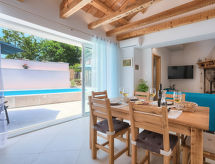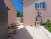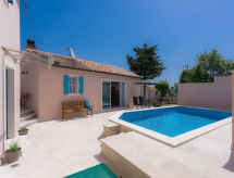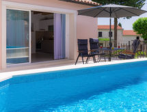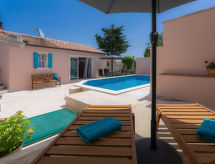 3 odalı ev 80 m2 üstünde 2 kat. Güzel ve rahat dayalı döşeli: oturma /yemek odası 25 m2 ile açık şömine ve Uydu-TV (LCD ekran), klima. Havuza çıkışlı. 1 oda ile 1 ikili yatak (2 90 cm, uzunluk 200 cm), duş/taharetlik/WC ve Uydu-TV (LCD ekran), klima. Amerikan mutfak (fırın, bulaşık makinesi, 4 cam seramik taban, mikro dalga fırın, derin dondurucu, kahve makinesi). Ayrı WC. Üst kat: (döner merdiven) 1 oda ile 1 ikili yatak (2 90 cm, uzunluk 200 cm), duş/taharetlik/WC ve Uydu-TV (LCD ekran), klima. Bahçede mangal (mobil), şezlong. Hizmetinize sunulan: kasa, ütü, fön makinesi. Internet (Wireless LAN, ücretsiz). Bir duş mevcuttur, bu nedenle biraz rahatlamak ve rahatlamak için zaman ayırın. Mülkiyet tamamen çitle çevrili. Klima sistemi iyi bir oda sıcaklığı sağlar. Çünkü iyi hissetme faktörü önemli bir rol oynar ve bizim için önemlidir. Izgara için uygundur. Özel bir havuz var.- tesisler