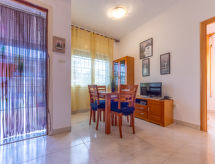 "Marie", 3 odalı daire 44 m2 'de/da 1. kat. Çocuk için uygundur obje 2 Yetişkin + 2. Amaca uygun ve konforlu dayalı döşeli: oturma /yemek odası ile dijital tv ve klima. 1 oda ile 1 french bed (150 cm, uzunluk 190 cm). 1 oda ile 2 adet yatak (80 cm, uzunluk 190 cm). Mutfak (4 ocak, mikro dalga fırın, kahve makinesi). Banyo/WC. Teras. Hizmetinize sunulan: çamaşır makinesi, ütü, fön makinesi. Internet (Wireless LAN, ücretsiz). Dikkat: ailelere uygun. Sigara içilmez daireler. HUTT003475 Bir küvet mevcuttur. Geceleri çok sıcak kalsa bile, güzel, klimayı açabilir ve hoş ılıman bir iç mekan ikliminde uyuyabilirsiniz.- tesisler