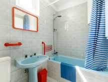 3 odalı dupleksin yarısı 56 m2. Amaca uygun dayalı döşeli: oturma odası ile Uydu-TV. Terasa çıkışlı. Amerikan mutfak (2 ocak). Banyo/WC. Üst kat: 1 oda ile 2 adet yatak. 1 oda ile 2 adet yatak ve klima. Balkona çıkışlı. Ayrı WC. Balkon 6 m2, teras 10 m2. Bahçede mangal (mobil), şezlong 2 adet). Park yeri (çitle çevrili, 2). 1 pet/ dog allowed. Evde banyo. Köpeğinizi yanınıza veya evcil hayvan evine teslim etmek yerine yanınıza alın. Çünkü dört bacaklı arkadaşın burada hoş karşılanıyor. Mülkiyet tamamen çitle çevrili. İçeri girin ve klimanın ferahlatıcı esintisini hissedin. Hava çalmıyorsa, bir TV de mevcuttur.- tesisler