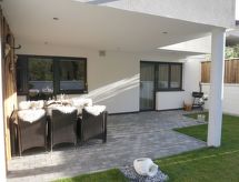3 odalı daire 70 m2, zemin katta. Konforlu ve rahat dayalı döşeli: 1 oda ile 1 x 2 ranza, 1 ikili yatak ve duş/WC. Bahçeye çıkışlı. 1 çift kişilik oda ile duş/WC. Oturma /yemek odası ile yemek masası, Uydu-TV, CD ve DVD. Bahçeye çıkışlı. Yemek pişirme yeri (fırın, bulaşık makinesi, 4 cam seramik taban, mikro dalga fırın, kahve makinesi). Büyük teras, küçük bahçe. Teras mobilyası. çok güzel, Dağ ve Orman manzaralı. Hizmetinize sunulan: Internet (Wireless LAN, ekstra). Park yeri. Dikkat: sigara içilmez daireler. Bahçemiz sizi oyalamaya davet ediyor. Bebek karyolası mevcuttur. Bir bulaşık makinesi mevcuttur. DVD oynatıcı var.- tesisler