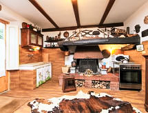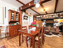 3 odalı daire 94 m2, zemin katta. Antik ve bol odunlu dayalı döşeli: oturma /yemek odası ile 1 çift kişilik divan yatak ve açık şömine. Terasa çıkışlı. 2 adet çift kişilik oda. Yemek pişirme yeri (4 ocak, fırın, mikro dalga fırın, mangal, kahve makinesi) ile yemek masası. 2 adet duş/taharetlik/WC. Kalorifer (ekstra). Kırsal konak tarzında konforlu donanım. Teras 20 m2 güney bölgesi. Teras mobilyası, kiler. Vadi manzaralı. Hizmetinize sunulan: kasa, ütü, cibinlik. Internet (Wireless LAN, ücretsiz). Muhteşem bahçe unutulmaz tatiller vaat ediyor.- tesisler