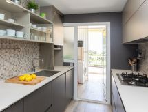 "Miramar", 3 odalı daire 61 m2. çok modern ve rahat dayalı döşeli: oturma /yemek odası ile yemek masası ve dijital tv. Terasa çıkışlı. 1 çift kişilik oda ile 1 french bed (150 cm, uzunluk 190 cm). 1 oda ile 1 yatak (120 cm, uzunluk 190 cm), 1 x 1 ranza (90 cm, uzunluk 190 cm), 1 çek yat (2 kişi. 2 x 90 cm, uzunluk 190 cm). Mutfak (fırın, bulaşık makinesi, 4, mikro dalga fırın, derin dondurucu, kahve makinesi). Terasa çıkışlı. Banyo/taharetlik/WC. Teras mobilyası. Deniz manzaralı. Hizmetinize sunulan: çamaşır makinesi, ütü, çocuk yemek sandalyesi, çocuk yatağı, 2 yaş 'a kadar fön makinesi. Internet (Wireless LAN, ücretsiz). Dikkat: ailelere uygun. Sadece TV ES. HUTG042626 Bir küvet mevcuttur. Denizin muhteşem manzarası ile şaşırttı. Bir terası vardır. Bir bebek karyolası var. Evin kapalı otoparkı da vardır. Evin ayrıca bir çocuk havuzu ile donatılmıştır. Bir Masa Tenisi masası mevcuttur.- tesisler