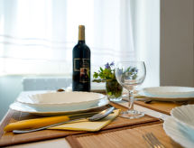 3 odalı ev 66 m2, doğu bölgesi. Oturma /yemek odası ile Uydu-TV (LCD ekran), DVD ve klima. 1 oda ile 1 ikili yatak (2 90 cm, uzunluk 200 cm). 1 küçük oda ile 2 adet yatak (80 cm, uzunluk 190 cm). Amerikan mutfak (fırın, bulaşık makinesi, 4 cam seramik taban, mikro dalga fırın, derin dondurucu, kahve makinesi). Duş/taharetlik/WC. Fanlı ısıtma (ekstra). Şezlong. Hizmetinize sunulan: çocuk yatağı. Internet (Wireless LAN, ücretsiz). Dikkat: sigara içilmeyen ev. 1 pet/ dog allowed. Evin ayrıca bir sundurma ile donatılmıştır. WLAN (Kablosuz Yerel Alan Ağı) var. Evde ayrıca bir DVD oynatıcı vardır.- tesisler
