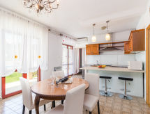 Aile ev "Nevenka (MVN201)", üstünde 2 katlı. Münferit köycü evi Rapki, 7 km ın merkezinde Motovun, 2 km in merkezinde Karojba, 19 km in merkezinde Poreč, 19 km denizden. Tek kişilik kullanım için: arsa 1'500 m2 ile çim ve ağaçlar, yüzme havuzu köşeli (9 4 m, 150 cm derin, Sezonluk kullanılabilirlik: 04.Apr. - 06.Nov.) ile içerden merdivenli. çocuk havuzu, dış duş, voleybol, teras (40 m2), bahçe mobilyası, mangal (salıncak, kum sandığı). Evde: internet kullanımı, trampolin, merkezi ısıtma, çamaşır makinesi. Otopark arsada. Marketler 2 km, Restaurant 2 km, çakıl taşlı plaj 19 km.Interior