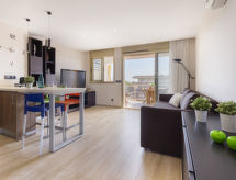 "Olimpic 92", 2 odalı daire 37 m2 'de/da 3. kat. Çocuk için uygundur obje 2 Yetişkin + 2. 2014 yılında tam/bütün yenilenmiş/bakımı yapılmış, konforlu ve modern dayalı döşeli: oturma /yemek odası ile 1 divan (145 cm, uzunluk 200 cm), dijital tv, klima, fanlı ısıtma ve elektrikli panjur. Terasa çıkışlı. 1 oda ile 1 french bed (150 cm, uzunluk 200 cm). Amerikan mutfak (fırın, bulaşık makinesi, 3 cam seramik taban, kahve makinesi). Duş/WC. Küçük teras. Teras mobilyası, şezlong 2 adet). çok güzel, Deniz ve Havuz manzaralı. Hizmetinize sunulan: çamaşır makinesi, ütü, fön makinesi. Dikkat: ailelere uygun. Sigara içilmez daireler. HUTT047304 Ön kapıya asansör ile uygun. İlişkili bir pastoral bahçe sizi güneşte oyalamaya davet ediyor. Denizin muhteşem manzarası ile şaşırttı. Bir bulaşık makinesi var. Bir havuz var.- tesisler