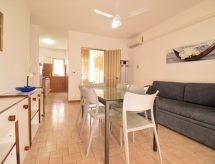 3 odalı daire 60 m2 'de/da 1. kat. Basit ve amaca uygun dayalı döşeli: oturma /yemek odası ile 1 divan, 1 çek yat ve TV (LCD ekran), klima. Balkona çıkışlı. 1 çift kişilik oda ile vantilatör. 1 oda ile 1 divan, 1 çek yat ve vantilatör. Yemek pişirme yeri (4 ocak, derin dondurucu). Duş/taharetlik/WC. Küçük balkon 2 m2, teras 13 m2, kapalı. Teras mobilyası. Harika, Deniz manzaralı. Hizmetinize sunulan: fön makinesi. Internet (Wireless LAN, ücretsiz). İkamet. Denizin muhteşem manzarası ile şaşırttı. Balkon mevcuttur. Mevcut TV seti hakkında bilgi edinin. Yerel veya uluslararası haberlerde olsun, televizyonla her zaman iyi bilgilendirilirsiniz. Kablosuz bir yerel alan ağı (WLAN) mevcuttur.- Konaklama özelliklerinin özellikleri