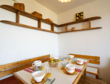 2 odalı daire 36 m2 'de/da 5. kat, kuzey bölgesi. Basit dayalı döşeli: oturma /yemek odası ile 1 çek yat (2 kişi. 2 x 80 cm, uzunluk 190 cm), TV (LCD ekran). Balkona çıkışlı, kuzey yönü. 1 oda ile 1 french bed (140 cm, uzunluk 190 cm). Balkona çıkışlı, kuzey yönü. Şilte odası ile 1 x 2 ranza (80 cm, uzunluk 190 cm). Yemek pişirme yeri (2 ocak, mini-fırın, mikro dalga fırın, kahve makinesi). Banyo, ayrı WC. Doğalgazlı ısıtma. Parke zemin. Balkon 9 m2 kuzey bölgesi. Dağ ve Vadi manzaralı. Hizmetinize sunulan: ütü, fön makinesi. Internet (Wireless LAN, ekstra). Dikkat: maximum 1 pet/ dog allowed. Duman dedektörü. Bir küvet mevcuttur. Burada köpeklerin girebileceği ve misafirlerin kabul edildiği yerler iyi. Balkon mevcuttur. Bir havuz mevcuttur. Ev ayrıca ısıtmalı bir havuz ile donatılmıştır. Bir mikrodalga fırın mevcuttur.- tesisler