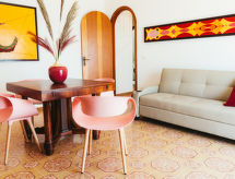 "Pinta", 3 odalı daire 90 m2 'de/da 1. kat. Konforlu ve zevkli dayalı döşeli: oturma /yemek odası ile 1 divan ve Uydu-TV (LCD ekran). Balkona çıkışlı. 1 çift kişilik oda. Balkona çıkışlı. 1 oda ile 2 adet yatak. Küçük mutfak (fırın, bulaşık makinesi, 4 Endüksiyon ocak tablası, mikro dalga fırın, derin dondurucu, kahve makinesi) ile küçük yemek masası. Duş/WC. Şofben (80 Litre). Balkon 7 m2. çok güzel, Deniz manzaralı. Hizmetinize sunulan: çamaşır makinesi, ütü, fön makinesi. Internet (Wireless LAN, ücretsiz). Park yeri (1). Maximum 1 pet/ dog allowed. Ev ayrıca kablosuz yerel alan ağı (WLAN) ile donatılmıştır. Bir soba var.- tesisler