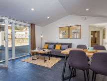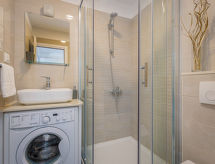 Ikiz ev "Prenc (PZN212)", 2021 yılında yenilenmiş. Münferit köycü evi Glavica, 2 km ın merkezinde Sveti Petar u Šumi, 8 km in merkezinde Pazin, 25 km denizden. Tek kişilik kullanım için: arsa 700 m2 (çitle çevrili) ile çim, yüzme havuzu (7 3 m, 27 m2, 150 cm derin, Sezonluk kullanılabilirlik: 16.May. - 19.Sep.). Dış duş, teras, bahçe mobilyası, mangal. Evde: internet kullanımı, çamaşır makinesi. Otopark (için 2 arabalar) evin orda arsada. Marketler 1.5 km, Restaurant 2 km, kayalıklı kumsal 25 km.Interior