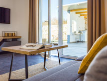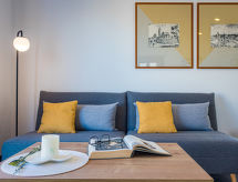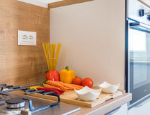 3 odalı dupleksin yarısı 90 m2. Oturma /yemek odası ile 1 çift kişilik divan yatak (160 cm, uzunluk 200 cm), Uydu-TV (LCD ekran), klima. 2 adet oda, her oda ile 1 french bed (160 cm, uzunluk 200 cm). Amerikan mutfak (4 ocak, fırın, bulaşık makinesi, mikro dalga fırın, kahve makinesi). 2 adet duş/WC. Teras kısmen kapalı teras kapalı. Teras mobilyası, şezlong. Hizmetinize sunulan: ütü, çocuk yatağı. Internet (Wireless LAN, ücretsiz). Dikkat: sigara içilmeyen ev. Özel bir havuzu var.- tesisler