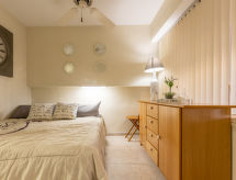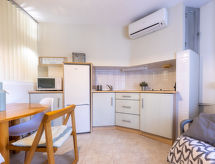 "Promar", 2 odalı daire 30 m2. Çocuk için uygundur obje 3 Yetişkin. Amaca uygun dayalı döşeli: oturma /yemek odası ile 1 divan (90 cm, uzunluk 180 cm), dijital tv ve klima. 1 oda ile 2 adet yatak (90 cm, uzunluk 180 cm). Amerikan mutfak (fırın, 3 cam seramik taban, mikro dalga fırın, kahve makinesi). Duş/WC. Hizmetinize sunulan: çamaşır makinesi, ütü, çocuk yemek sandalyesi, çocuk yatağı, 3 yaş 'a kadar fön makinesi. Internet (Wireless LAN). Dikkat: ailelere uygun. Sigara içilmez daireler. R000000001 Tatil tesisinde yolcu asansörü vardır. Etkileyici ısı, beden ve zihin üzerinde ağır bir yük yaratabilir. Bu nedenle, tesis klima ile donatılmıştır. Kablosuz bir yerel alan ağı (WLAN) vardır.- tesisler