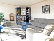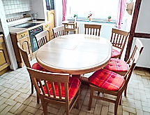 7 odalı dupleksin yarısı 235 m2 üstünde 2 kat, zemin katta. Zevkli dayalı döşeli: oturma odası ile Uydu-TV, müzik seti ve DVD. 1 oda ile 1 ikili yatak (2 90 cm, uzunluk 200 cm). Mutfak (fırın, bulaşık makinesi, mikro dalga fırın, kahve makinesi) ile yemek masası. Banyo/duş/bide/tuvalet, çift lavabo, jakuzili. Üst kat: 3 adet çatı tavan oda, her oda ile 1 ikili yatak (2 90 cm, uzunluk 200 cm). Ayrı WC. Bahçede mangal (mobil), şezlong, kış bahçesi, kiler. Hizmetinize sunulan: çamaşır makinesi, sauna, çocuk yatağı, fön makinesi. Garaj arsada. Dikkat: sigara içilmeyen ev. Maximum 1 pet/ dog allowed. Duman dedektörü. İnsanlar ve hayvanlar için bir tatil keyfi. Bu bir köpek ve kedi dostu tatil konaklama. Rahatınız için tatil sezonunda spa küvetinin tadını çıkarın. Barbekü için uygundur. Bebek karyolası mevcuttur. DVD oynatıcı var. Bir fırın mevcuttur.- Konaklama özelliklerinin özellikleri