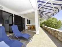 3 odalı daire 45 m2, zemin katta, güney batı cephesi. Oturma /yemek odası 11 m2 ile Uydu-TV (LCD ekran), klima. Terasa çıkışlı. 1 oda ile 1 french bed (160 cm, uzunluk 200 cm). Terasa çıkışlı. 1 oda ile 2 adet yatak (90 cm, uzunluk 200 cm). Amerikan mutfak (4 ocak, fırın, bulaşık makinesi, derin dondurucu, kahve makinesi). Duş/WC. Teras 27 m2, kapalı. Teras mobilyası. Deniz manzaralı. Hizmetinize sunulan: çamaşır makinesi. Internet (Wireless LAN, ücretsiz). Üstelik berrak bir deniz manzarası ile berbatlar.- tesisler