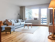 2 odalı daire 65 m2 'de/da 1. kat. 2016 yılında tam/bütün yenilenmiş/bakımı yapılmış, güzel ve modern dayalı döşeli: oturma/yatak odası ile 1 çift kişilik divan yatak (1 160 cm, uzunluk 200 cm), yemek masası, TV ve Radio. Balkona çıkışlı. 1 çift kişilik oda ile 1 ikili yatak (1 160 cm, uzunluk 200 cm). Amerikan mutfak (fırın, bulaşık makinesi, 4 cam seramik taban, derin dondurucu, kahve makinesi). Banyo/duş/WC. Kalorifer. Balkon 8 m2 güney bölgesi. Balkon mobilyası. Güzel manzaralı. Matterhorn. Hizmetinize sunulan: fön makinesi. Internet (Wireless LAN, ücretsiz). Dikkat: sigara içilmez daireler.- Konaklama özelliklerinin özellikleri