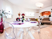Güzel, konforlu ev "Reynaud". Mevkii Pení, 1 km in merkezinde Empuriabrava, sakin/sessiz, güneşli yer vllalar semtinde, trafiksiz bölge, 1.5 km denizden, 180 m kanaldan, güney batı yönü. Tek kişilik kullanım için: yüzme havuzu köşeli (4 7 m, Sezonluk kullanılabilirlik: 01.Apr. - 30.Oct.). Teras, bahçe mobilyası, mangal, mangal evi, otopark, açık otoparklar caddede. Marketler, süper market 300 m, alışveriş merkezi 2 km, Restaurant 300 m, Bar 200 m, otobüs durağı 2 km, kumsal "Empuriabrava" 1.5 km. Spor alanı 1.7 km, golf sahası 12 km, tenis 2 km, mini golf 750 m, binicilik 3 km. Gezilecek yerler: Centro Aerodromo y túnel del viento 1 km, Parque Acuático Roses 10 km, Casino y festival de Perelada 12 km, Museo Dalí de Figueres 15 km, Ruïnes de Sant Martí de Empuries 21 km, Monasterio de Sant Pere de Rodes 23 km. Genç grupları sadece sorulduktan sonra. Sörfçü arkadaşlar dikkat, yerel sahil sörf için ideal koşullara sahiptir. Profesyonel ya da amatör olsun, tereddüt etmeyin ve yakındaki golf sahasında yuvarlama eğitimine gidin. Binicilik meraklıları için güzel bir ortam ve atmosferi sevenler bekliyor. Bir at veya binici olarak daha ne istiyorsun? Tenis kortları mevcuttur. Böylece tenis tutkunları her seviyede antrenman yapabilirler.Interior