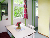 "Rico Plage (SNF145)", 3 odalı Bungalow 23 m2. Amaca uygun dayalı döşeli: oturma /yemek odası ile yemek masası ve elektrikli soba. 1 oda ile 1 french bed. 1 oda ile 2 adet yatak. Yemek pişirme yeri (2, kahve makinesi). Duş, ayrı WC. Teras kapalı. Teras mobilyası. Hizmetinize sunulan: Internet (Wireless LAN, ücretsiz). Dikkat: ailelere uygun. Sigara içilmez daireler. Tatil konaklama kendi resepsiyonu vardır. Bahçemiz sizi oyalamaya davet ediyor. Bir Masa Tenisi masası mevcuttur.- tesisler