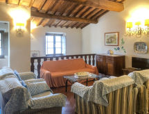 Çok güzel, rahat, konforlu kırsal konak "Antico Borgo San Lorenzo", 11. yüzyıl den/dan, 1998 yılında yenilenmiş, çevrili çimen, kırlık alan ve bağlar. Residence'te 5 daire. Residence'te 10 daire. 4 km ın merkezinde Colle di Val d'Elsa, 14 km in merkezinde San Gimignano, 24 km in merkezinde Siena, yalnız, güneşli yer tepede, 70 km kumsaldan, yeşillikler içinde. Kullanım için: arsa 5 ha, bahçe (çitle çevrili değil) ile bitki ve çiçekler, çayır/çimen, yüzme havuz (16 8 m, 140 - 150 cm derin, Sezonluk kullanılabilirlik: 15.Apr. - 31.Oct.). Dış duş, masa tenisi, teras, mangal, çocuk parkı. Evde: restaurant, kahvaltı salonu, langırt, çamaşır makinesi, çamaşır kurutma makinesi (birlikte kullanım için, ekstra), bisiklet kiralama. Kahvaltı talep doğrultusunda (ekstra). 1.2 km uzun/boyunca giriş (doğa yolu). Otopark (kapalı) arsada. Marketler 4 km, süper market 4 km, fırın 3 km, tren istasyonu "Colle di Val d'Elsa" 4 km, kumsal "Cecina Mare" 73 km, dalgalı yüzme havuzu 6 km. Yoldan yüyüyüş yolları mevcut 100 m. Gezilecek yerler: Monteriggioni 12 km, Certaldo 25 km, Volterra 32 km, Firenze 60 km, Montalcino 66 km. Lütfen dikkat: araç önerilir. Ailelere uygun, bebekli ailelere gerekli donanım (dahil). Etkinlikler için uygun. Istek üzerine hava limanından tatil objesine transfer organize edilebilir. Köy ürünlerinin satışı yapılmaktadır. Tüm evler/daireler endividüel döşenmiştir.Interior
