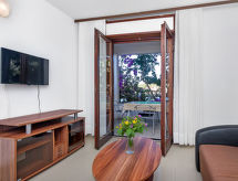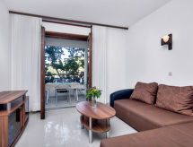 2 odalı daire 36 m2 'de/da 1. kat, doğu bölgesi. Oturma /yemek odası ile Uydu-TV (LCD ekran), klima. Terasa çıkışlı. 1 oda ile 1 yatak (90 cm, uzunluk 200 cm), 1 french bed (160 cm, uzunluk 200 cm), duş/WC, Uydu-TV ve klima. Balkona çıkışlı. Amerikan mutfak (fırın, 2 cam seramik taban, derin dondurucu). Duş/WC. Klima (ekstra). Balkon 4 m2, teras 8 m2, kapalı. Teras mobilyası. Harika, Deniz manzaralı. Hizmetinize sunulan: Internet (Wireless LAN, ücretsiz). 1 pet/ dog allowed. Denizin muhteşem manzaralarını sunar. Balkon mevcuttur. Izgara için uygundur.- tesisler