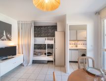 1 oda daire 26 m2 'de/da 2. kat, kuzey batı bölgesi. Oturma/yatak odası ile 1 çift kişilik divan yatak (140 cm, uzunluk 190 cm), 1 x 2 ranza (90 cm, uzunluk 190 cm), yemek masası, TV ve LCD ekran. Locaya çıkışlı. Yemek pişirme yeri (fırın, 3 cam seramik taban, kahve makinesi, kombine mikrodalga). Banyo, ayrı WC. Balkon 5 m2. Balkon mobilyası. Hizmetinize sunulan: çamaşır makinesi. Internet (Wireless LAN, ekstra). Dikkat: duman dedektörü. İkamet. Bir küvet mevcuttur. Bahçemizde sizlere dinlenme ve dinlenme için bolca alan sunar. Balkonu var. Hava çalmıyorsa, bir TV de mevcuttur.- Konaklama özelliklerinin özellikleri