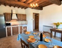 Tatil tesisi "Podere la Querciola", üstünde 2 katlı, 2021 yılında yenilenmiş, çevrili çimen ve kırlık alan. Mevkii Casino di Terra, 11 km ın merkezinde Guardistallo, 14 km in merkezinde Cecina, yalnız, sakin/sessiz yer, 16 km denizden. Kullanım için: arsa ile bitki ve ağaçlar, yüzme havuz (6 11 m, 150 cm derin, Sezonluk kullanılabilirlik: 01.May. - 15.Oct.). çocuk havuzu, dış duş, hot tub, bahçe mobilyası, mangal. Tesiste: Wireless LAN, çamaşır makinesi (ekstra). Giriş (700 m doğa yolu). Otopark. Marketler 11 km, Restaurant 2 km, Bar 2 km, kumsal "Marina di Cecina" 16 km. Gezilecek yerler: Volterra 24 km, Pisa 70 km, Firenze 100 m.Interior
