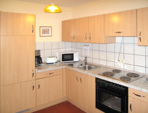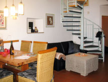 3 odalı dupleksin yarısı 73 m2 üstünde 2 kat. Çocuk için uygundur obje 4 Yetişkin. Oturma/yatak odası ile isveç ocağı, yemek masası ve Uydu-TV. Amerikan mutfak (4 ocak, fırın, mikro dalga fırın, kahve makinesi). Duş/WC. Gazlı ısıtma. Üst kat: (döner merdiven) 1 çatı tavan oda ile 1 ikili yatak. 1 oda ile 2 adet yatak. Gazlı ısıtma. 1 adet teras. Teras mobilyası, şezlong 2 adet). Panoramik. Hizmetinize sunulan: Internet (Wireless LAN, ücretsiz). Dikkat: sigara içilmez daireler. Duman dedektörü, yangın söndürücü. Bir teras mevcuttur. Bir çamaşır kurutma makinesi var. Bir Masa Tenisi masası mevcuttur.- tesisler