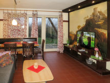 Tatil tesisi "Feriendorf Schlossberg". 600 m ın merkezinde Zandt, 12 km in merkezinde Cham, 48 km in merkezinde Deggendorf, bayırda. Kullanım için: arsa. Masa tenisi (ekstra). Tesiste: karşılama/resepsiyon, masa tenisi (ekstra). çamaşır makinesi, çamaşır kurutma makinesi (birlikte kullanım için, ekstra). Mevcut: kızakla kaymak. Ski asansörü 20 km, koşu alanı 20 km. Lütfen dikkat: katalog resmi sadece bir evin örneğidir.Interior