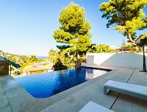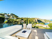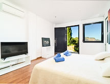 4 odalı Villa 280 m2. Modern ve zevkli dayalı döşeli: oturma /yemek odası ile açık şömine ve Uydu-TV (LCD ekran), klima. Terasa çıkışlı. 1 oda ile 1 french bed. Büyük, amerikan mutfak (fırın, bulaşık makinesi, 3 Endüksiyon ocak tablası, mikro dalga fırın, derin dondurucu). Duş/WC. Alt kat: (dış merdiven) 1 büyük oda ile Giyinme odası ile 1 french bed, duş/WC ve Uydu-TV (LCD ekran), klima. Üst kat: 1 büyük oda ile 1 french bed, duş/WC, çift lavabo ve Uydu-TV (LCD ekran), klima. Terasa çıkışlı. Büyük teras kapalı. Teras mobilyası, bahçede mangal, şezlong. Harika panoramik Deniz manzaralı. Hizmetinize sunulan: çamaşır makinesi. Internet (Wireless LAN, ücretsiz). Park yeri (çitle çevrili, 2) evin orada. AT-459703-A Çitlerle çevrili arsa ile. Deniz ve yer manzarası muhteşem. Yazları serinletmek için bu tatil evinde klima vardır. Bir teras mevcuttur. Bir ateş çukuru var. Bir havuzu var. Özel bir havuzu var.- tesisler