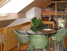 4 odalı dupleksin yarısı 90 m2 üstünde 3 kat. Rahat ve bol odunlu dayalı döşeli: 1 çift kişilik oda. Balkona çıkışlı. 1 oda ile 1 ikili yatak. 1 oda ile 1 x 2 ranza. Galeri ile yemek masası. Amerikan mutfak (fırın, bulaşık makinesi, 4 cam seramik taban, kahve makinesi). Banyo/WC, duş/WC. Üst kat: oturma /yemek odası ile yemek masası ve Uydu-TV. Balkona çıkışlı. Gazlı ısıtma. Parke zemin. 2 adet balkon. Balkon mobilyası. Güzel, Dağ ve Vadi manzaralı. Hizmetinize sunulan: çamaşır makinesi, çocuk yemek sandalyesi, çocuk yatağı. Internet (Wireless LAN, ücretsiz). Dikkat: sigara içilmeyen ev. Maximum 1 pet/ dog allowed. Duman dedektörü. İnsanlar ve hayvanlar için bir tatil keyfi. Bu bir köpek ve kedi dostu tatil konaklama. Evin ayrıca bir balkonu vardır.- Konaklama özelliklerinin özellikleri