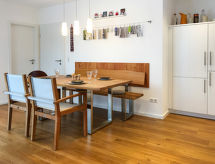4 odalı ev 61 m2, zemin katta. Stilli ve rahat dayalı döşeli: oturma odası ile Uydu-TV (LCD ekran), Radio ve DVD. Bahçeye, terasa çıkışlı. Büyük yemek odası. Terasa çıkışlı. 1 oda ile 2 adet yatak (90 cm, uzunluk 200 cm). 1 oda ile 1 ikili yatak (2 90 cm, uzunluk 200 cm). Amerikan mutfak (fırın, bulaşık makinesi, 4 cam seramik taban, kahve makinesi). Duş/WC. Teras 25 m2. Teras mobilyası. Hizmetinize sunulan: çamaşır makinesi, cibinlik, çocuk yemek sandalyesi, çocuk yatağı (ekstra), fön makinesi. Internet (Wireless LAN, ücretsiz). Dikkat: sigara içilmez daireler. Bir teras var. Bir DVD oynatıcı mevcuttur.- tesisler